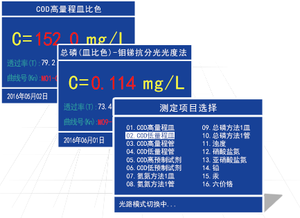 直接測(cè)定化學(xué)需氧量(COD)、氨氮、總磷、濁度等多項(xiàng)參數(shù),濃度直讀
