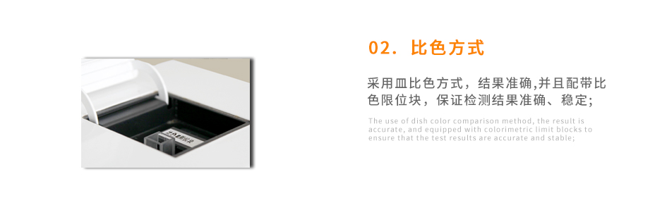 采用皿比色方式,結(jié)果準(zhǔn)確,并且配帶比 色限位塊,保證檢測(cè)結(jié)果準(zhǔn)確、穩(wěn)定;