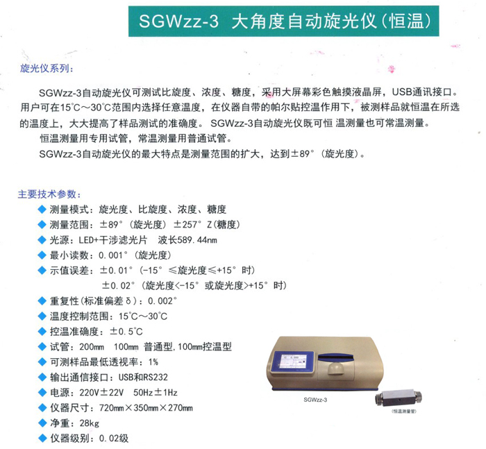 大角度自動旋光儀(恒溫) SGWzz-3